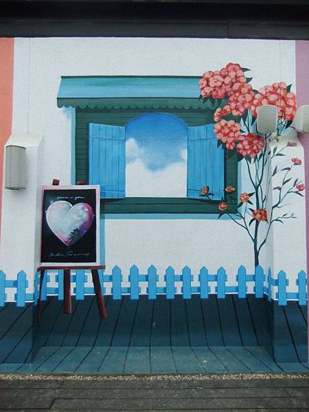 因為水晶教堂現在不能入內,聽說之前都有人違反規定偷跑進草皮內照相,害的草皮都生不出來才會暫時停止入內參觀的,我就來這裡照照相啦~也順便照照這裡的彩繪牆,以下相片請參考一下。
