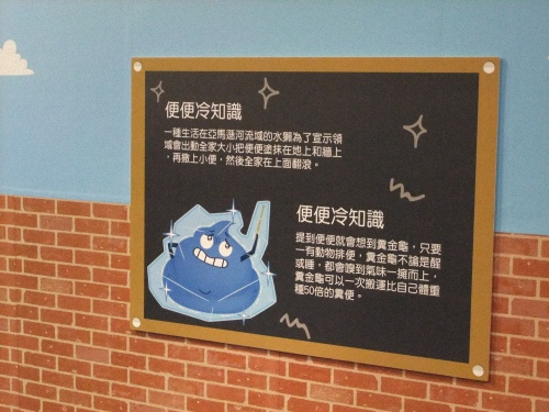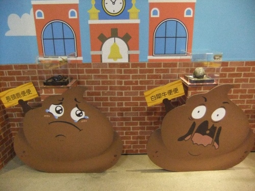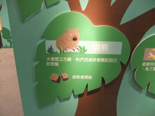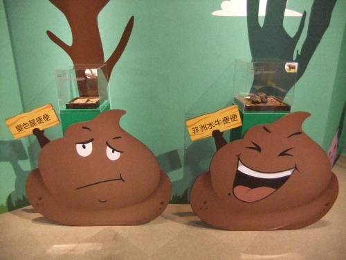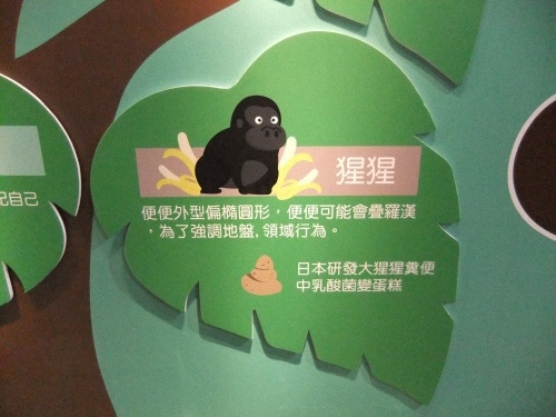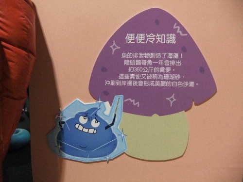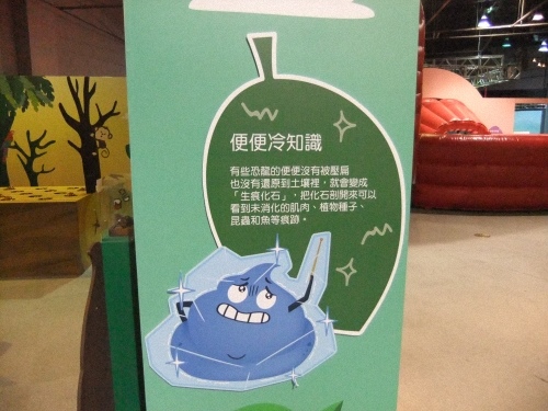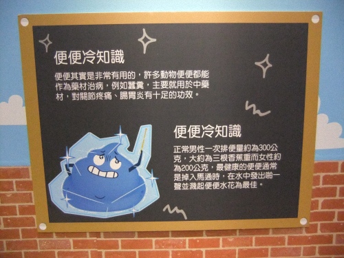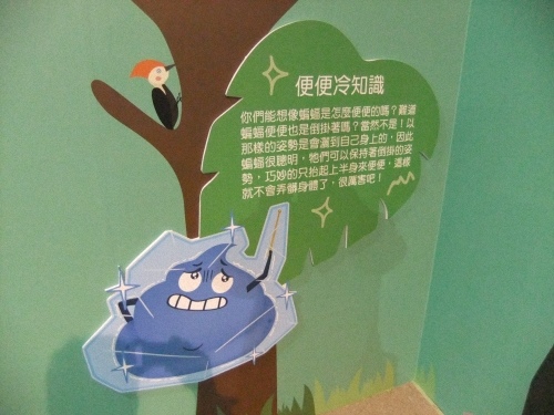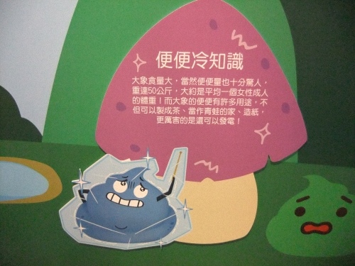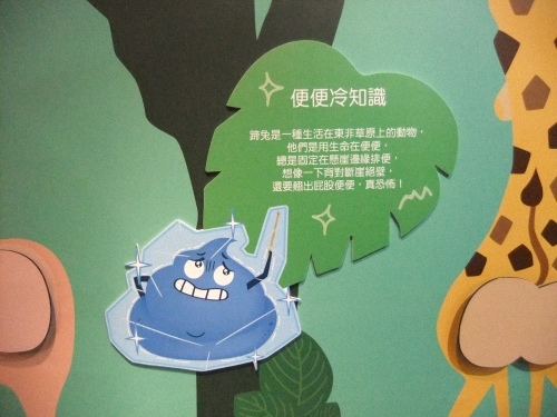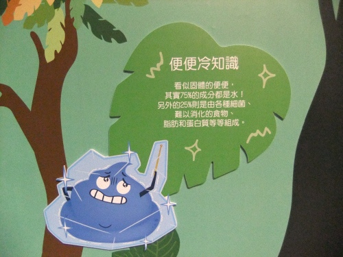 以上是小孩子會喜歡玩的東西,大人們呢,其實可以看看「便便冷知識」這看板,裡面有很多便便的知識是我們平時不大可能知道的。像是魚的排泄物創造了海灘、蠶便可以當做中藥材等等等,還會陳列一些動物的大便給你看,這個在吃東西的時候不要看較好,以下相片就請參考一下吧。