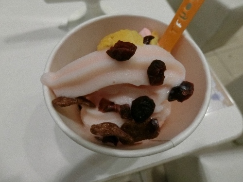 到了夢時代後,我們在六樓把車停好就先到夢時代購物中心外面的「憶童玩愛無限慈善嘉年華會」逛逛,這時是中午時刻,天氣還挺熱的,這裡就像園遊會似的,有賣一些小吃和飲料,還有展示一些軍事用品和汽機車,因為天氣太熱,我們就蛇進夢時代裡面走走逛逛了,我們在夢時代地下一樓美食區吃了優格,雖然有點貴,但好吃也消暑。