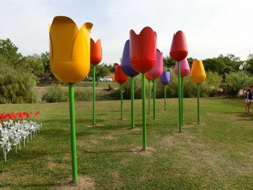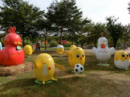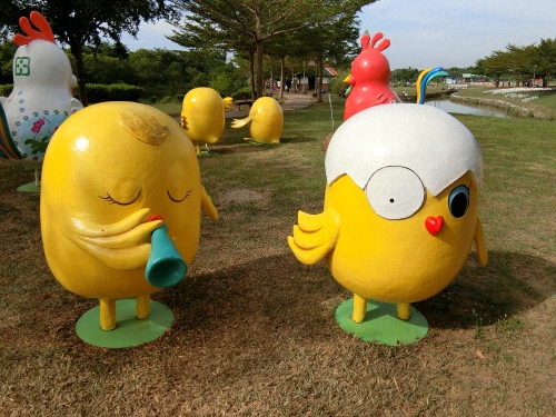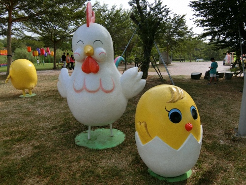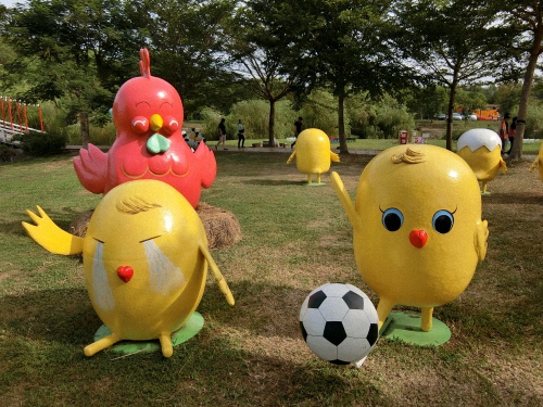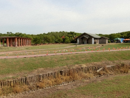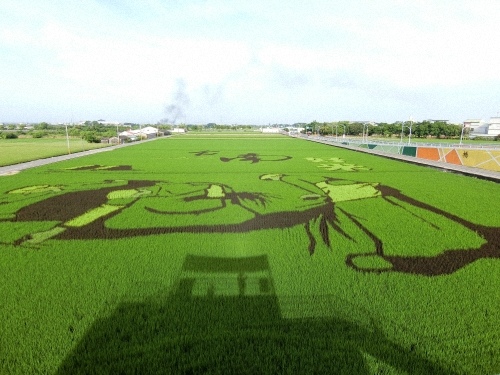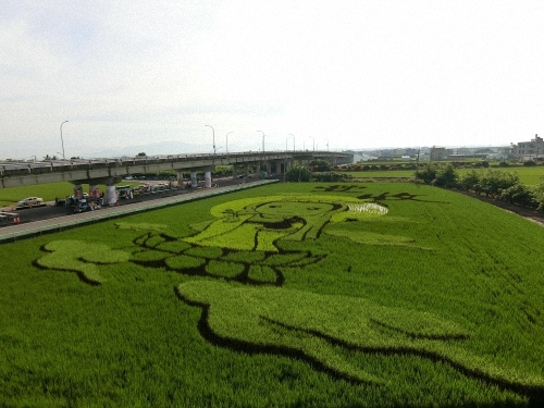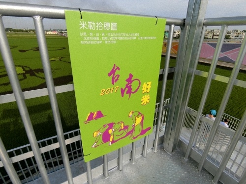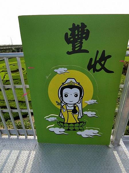 這裡有設一個登高景觀台。一付圖是豐收觀音圖、另一付是米勒拾穗圖。只可惜高度並不高,所以我能拍的就只有這樣,陸橋下還有一些農村市集,手創品活動,還有打卡拍照送東西的活動,還有爆米香的貨車,的確令人懷念,只可惜我去的時間較早,他們都在準備中,所以我就沒進去走走了。