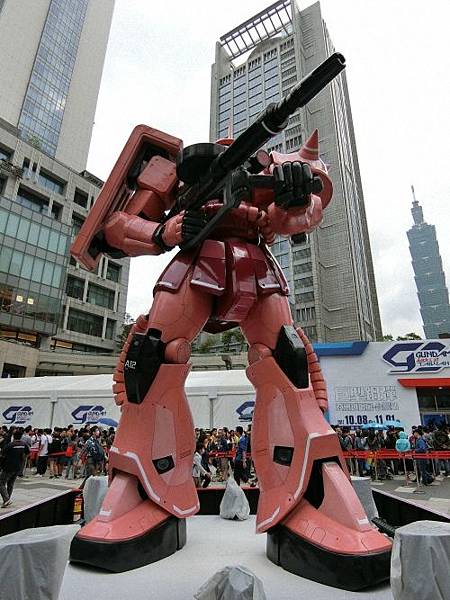 坐上捷運到市政府站後,一出捷運就到了統一百貨時代百貨店,找人問一下鋼彈在那?人家很好心的跟我報了要上樓才能看到,怪不得我繞了一圈都沒看到,到了後真的是人山人海,也看到鋼彈了,但我就沒排隊進去看那些拍賣展了,真的很恐怖的人潮,以下在外面拍的相片請參考一下吧。