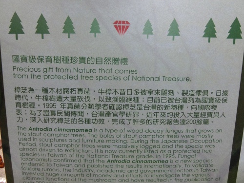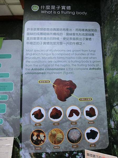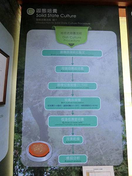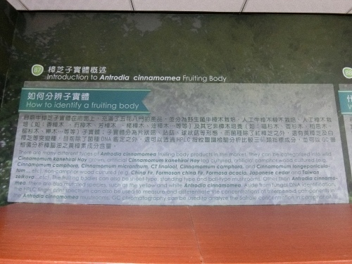 如上所說,我只是個散客,所以只能參觀樟芝區、大廳、展售區而已。樟芝在台灣視為獨特珍貴的藥用真菌,這裡稍微提到了樟芝真菌是如果培養出來的,還有過程圖示說明,還有樟芝的功用等等等,這邊大多是看板說明,我還想看的是乳酸菌館、微生物應用館、中草藥發酵走廊、食藥用真菌館、微酵體驗這部份,可惜散客這部份無法參觀,只好作罷了,下面是樟芝館和展售區的部份,就請參考一下相片就好吧。