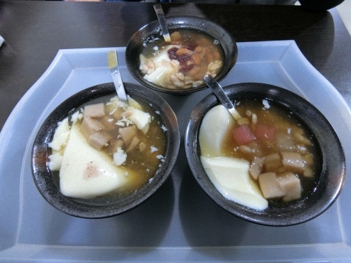 我們接下來就到了大溪老街走走逛逛,逛逛這裡的老街氣氛,可惜星期一的關係,很多汽車都開進老街,老街的路很小條,我們就得閃來閃去的,我們在這裡吃了賴媽媽豆花、老阿伯滷豆干、肉燥碗粿,然後天氣很冷又一直下雨,我們沒在這裡逛太久,逛到了中正公園後,我們就離開了。
