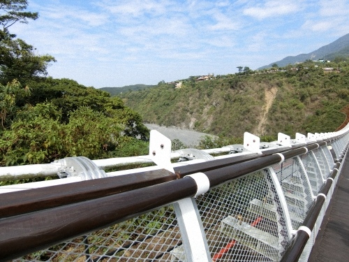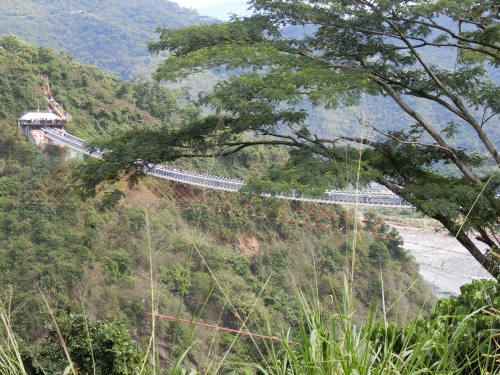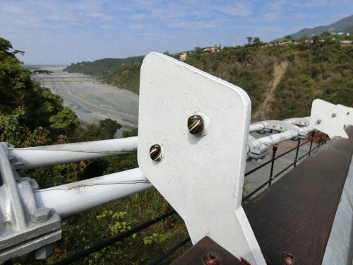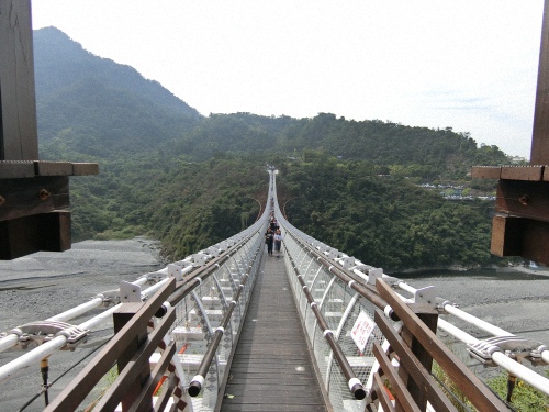 我們一路往屏東前進,看到了 屏東熱帶農業博覽會 ,但這裡的人實在太多,我們就略過,我們先去三地門的三教寶宮拜拜,這裡上次來是8年前的事。我們前往了山川琉璃吊橋,去年開幕時聽同事說,他們排了三個小時的隊,今年來人就少很多,然後死黨怕高,但我們還是買了他的票,全票一人50元,我們就一起走吊橋,我看吊橋旁邊有崁入琉璃珠,每個琉璃珠都有涵意,原來這就是琉璃吊橋的由來,聽說死黨昨天沒睡好,他的HP只剩下一點點,我們騙他走吊橋後,他的HP趨近於0了,我們真是壞心。以下是走吊橋拍的相片,請參考一下。