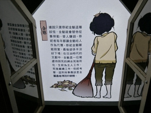 也是來到這裡後,我才知道現在人家說台灣是「寶島」、「鬼島」,還有另一個雅稱「鯤島」,還有人稱為「魔島」哩,以上這些妖怪製作成RPG遊戲的話,感覺會很有意思,聽說手遊遊戲有出類似的遊戲,但個人不玩手遊,所以也不大清楚,以下相片就參考一下,說明看板的部份我大致上都拿掉了,只留下圖文說明的圖,有興趣的話,來台南可以排一下時間去走走,了解台灣的鬼怪傳說文化喔~