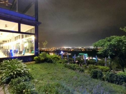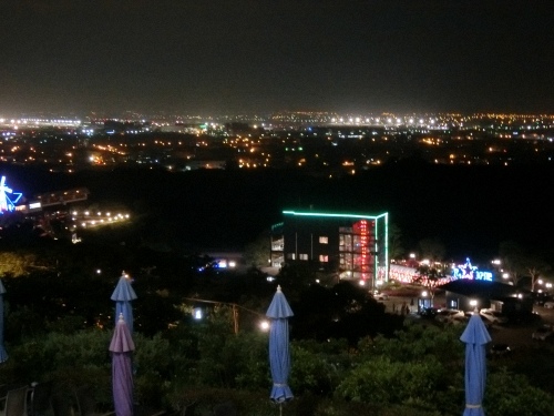 2018年4月22日星期日,這天晚上仍然跟友人一起出遊到北部,預計4月23日到台北的木柵動物園走走,前一天晚上就住在之前住過的中壢-中央飯店,晚上中壢的友人們就帶我們到蘆竹的太古山的「海灣星空咖啡館」看夜景和吃晚餐,友人們聚在一起閒聊和看夜景,從這裡看出去可以看到桃園機場,我也看到飛機上上下下飛了好幾次。