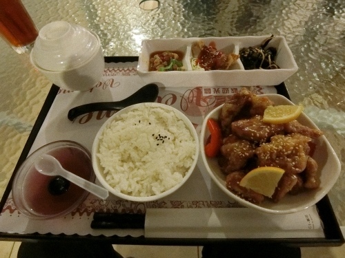 ↑晚餐-澄汁梅花豬,配菜不多,但肉的份量挺足的。