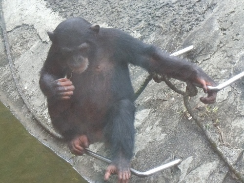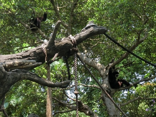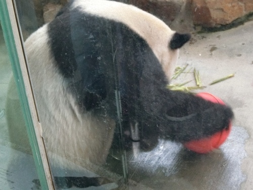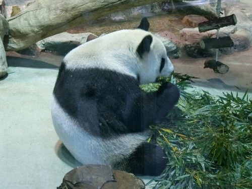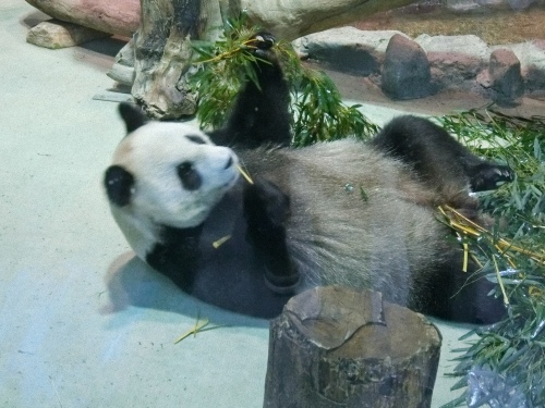 高雄壽山動物園裡最有名的應該是那頭 白老虎,木柵動物園裡最有名的仍然是那二隻熊貓,上次來這裡時是人山人海,這次星期一人少了很多,所以我們看的很清楚,可以看到熊貓圓圓在那邊啃竹子,而且還會倒在地上啃,很吸晴,我一度還以為是不是工讀生扮的,請看最上面那張圖就是了。