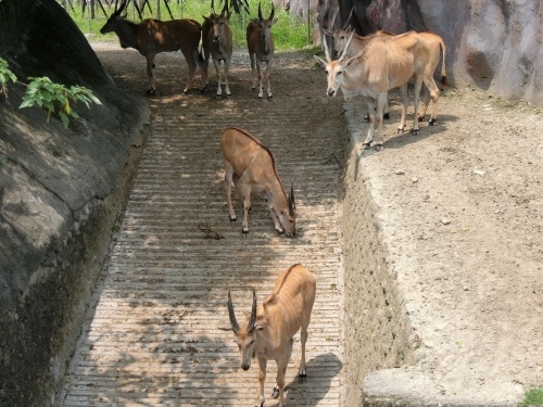 下面的相片是我們在木柵動物園走了三、四個小時後拍的,就請參考一下吧,這樣全票才60元,真的很划算,而且動物又多,還可以花5塊錢坐車到最上方的企鵝館,再慢慢走下來逛下來,而且裡面廁所也多,也有便利商店和飲水機,挺便民的,我們也在便利商店喝了水和買冰淇淋來吃,走一走下來也流了不少汗,這天的天氣挺熱的,熱到很多動物都在睡大頭覺,