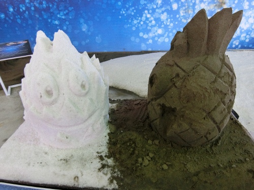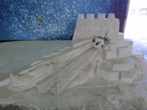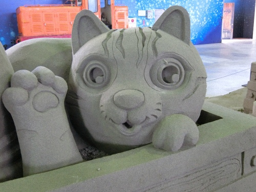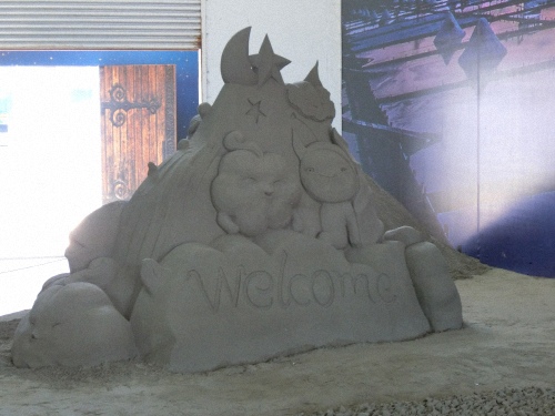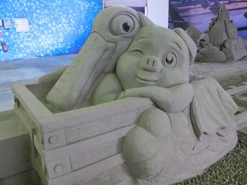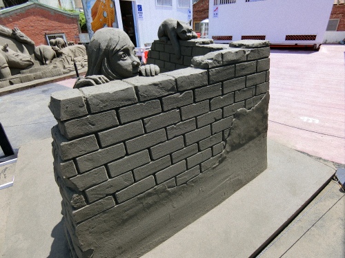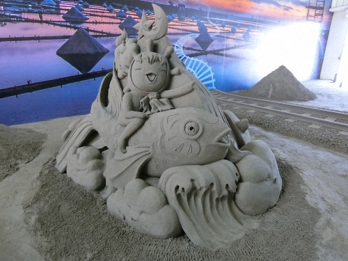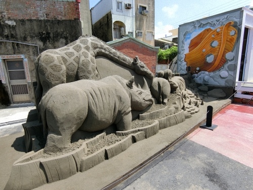 哪,以上就是這次2018年一箭雙雕藝術季的走走逛逛小心得。其實我7月10日就先行到這個地方了,那時馬沙溝彩繪村的沙雕才剛在製作中,我還跟工作人員聊了一下,他說颱風沒攪局的話,再一個星期就可以完成,但他說七股鹽山的鹽雕已完成了,要我可以先去看一下,我花了50元進去後,才發現鹽雕的倉庫根本沒打開嘛,簡單的說就還沒正式開幕,50元白花了,氣死我,過了一個星期後看報紙才發現最近才正式開幕了,剛好放假我才跑過來看看,雖然規模很小,但如果住台南不想跑太遠的話,這裡倒是可以考慮一下,以上。