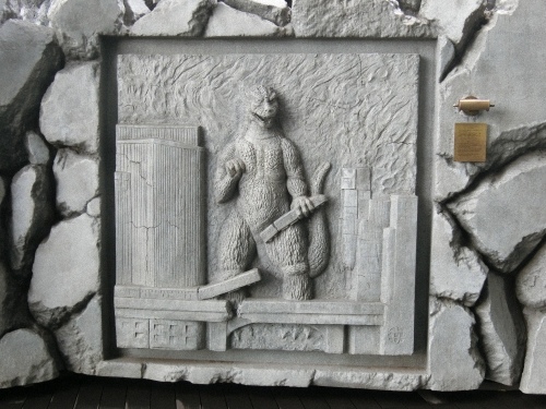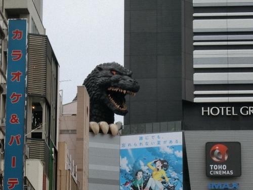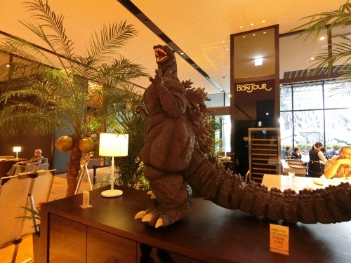 我最主要的目的就是格拉斯麗酒店的那頭哥吉拉啦!來到日本就是看哥吉拉!我們找到了飯店,來到了8樓,飯店人員很有禮貌的跟我們說可以去拍照,我就在外面的哥吉拉大頭像拍了幾張相片。記得小時候,我老爸來日本帶回了一隻遙控哥吉拉,另一隻是高約30公分的哥吉拉模型(可發出聲音),我老爸很囂張的跟我說他跑遍了整個東京才幫我找到這隻!但老爸,我今天找到的哥吉拉比你當年送我的還大隻呀!不知我這二天在日本走的足跡,是否有跟我當年的笨蛋老爸有重覆呢…