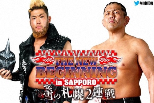 阿部未步(MIHO ABE)小姐跟著太一出場,接著就是內藤出場了,但飯塚叔叔拿著梯子出來偷襲內藤,連出來阻止的年輕獅子也一起攻擊了,太一又抓住內藤讓飯塚再來一發,接著再使出黑惡魔坐擊把內藤砸在花道上,內藤失神被帶回休息室裡,造成場內的大混亂,連菅林會長和負責醫務的三澤威教練也都在討論該怎麼辦!其實喜歡早期日本摔角的人,應該會知道這是1984年2月3日一樣是在札幌發生的藤原喜明攻擊入場長州力的著名歷史事件,記得長州力被打到頭破血流,最後的結果是比賽不成立。但這次內藤是由BUSHI扶著走出來,三澤威教練要阻止他,但被內藤推開,內藤拖著身子要求敲鐘,比賽算是開始進行了。
