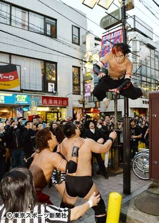 後記:高木社長曾形容路上職業摔角是「場外亂鬥的擴大解釋版」,在商店街打職業摔角時,來買東西的客人都會被嚇一跳且停下來觀看,要是在一般室內比賽他們就看不到了。而且每次辦完路上職業摔角後,用“職業摔角”去搜尋就會有不少人提到「剛才在我們這邊的商店街有人在打摔角」、「忍不住就看了覺得很有趣」,反應相當熱烈。