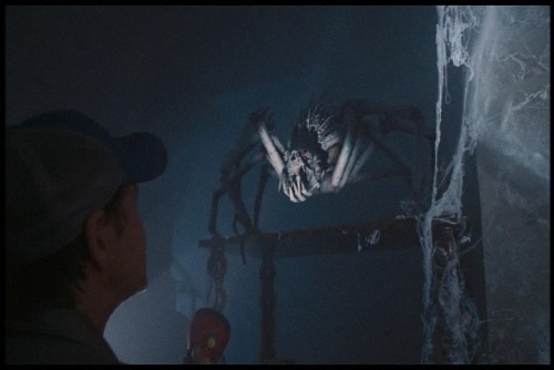 ※小說裡藥局的大戰算是輕描淡寫的說有蜘蛛怪和屍體,但電影裡的劇情就比較駭人,裡面有一位憲兵被蜘蛛怪放卵,整個身體爆炸後出現一堆小蜘蛛,但蜘蛛絲有強酸腐蝕效果這點,是小說跟電影都一樣的。