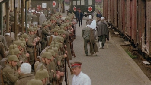 ↑準備上戰場的保羅新兵們與剛下火車的傷兵們形成對比