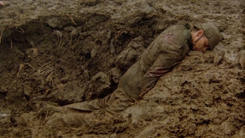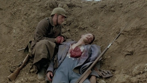 ↑保羅與他殺的法國士兵,這一幕也道出如果不是戰爭的話,他們或許會是好朋友。(其實細看的話,可以看到法國士兵還有呼吸的畫面)