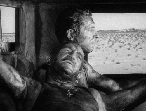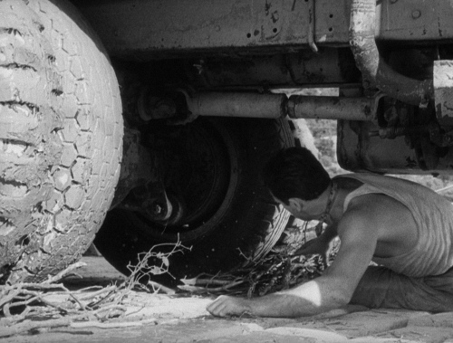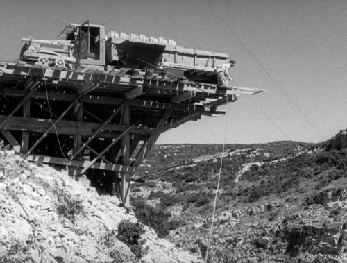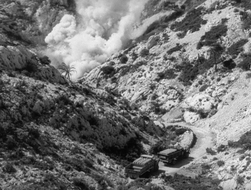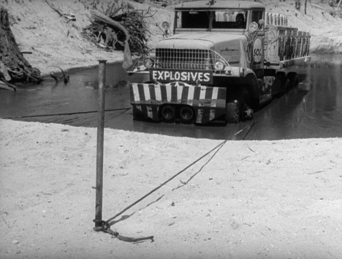 像這種自然風險的驚悚感,個人覺得1977年的腐爛吊橋那段實在讓人印象深刻,而1953年的小山路迴轉那段也是讓人看的心驚膽跳,不要忘記這是71年前的電影,雖然是黑白畫面,但那種摒息感仍然可以在銀幕面前感受的到,雖然開車畫面和背景畫面很明顯看的出是剪接的,但演員的氣場可以蓋過這一切,以前老演員的氣場就是特別強,加上是黑白畫面的單一色調,可以蓋過很多簡陋的部份,這也是黑白電影的好處。